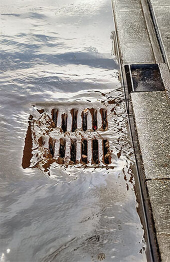 Urgent unblocking of stormwater pits and grated inlets clogged with leaves, dirt, or debris during storms to prevent backflow and surface flooding.